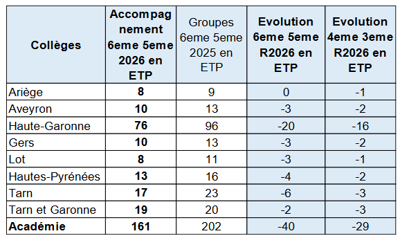 suppression des moyens pour les 4ᵉ et 3e et baisse de 20% des moyens pour les 6e et 5e.