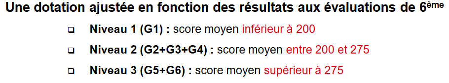 Les moyens alloués les années précédentes pour les « groupes de besoin ». Eux aussi « enterrés » (on parle d' »accompagnement »…) sont revus à la baisse.