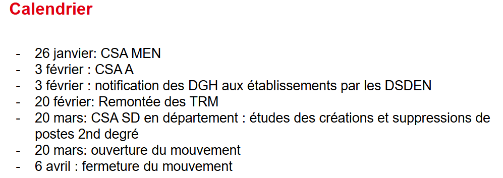 Les CSA Départementaux (CSAD) décideront des créations ou suppressions de postes au retour des vacances d’hiver.