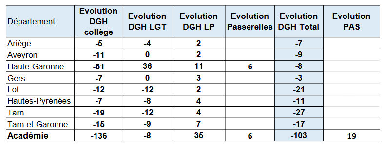 Les dotations sont arrivées dans les établissements le soir même, pour un examen des TRMD (Tableau de Répartition des Moyens par Discipline) et des votes de demandes de créations ou suppressions de postes en Conseil d’Administration d’ici aux vacances.
